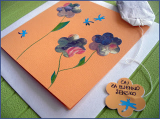 Dolgo že nisem ustvarjala. Brala sem knjigo Ženski možgani, zunaj je močno deževalo, a se nisem mogla osredotočit na hormone, ki naj bi bili zaslužni za to, kar smo. Zvlekla sem kolaž, lepilo, rezila in uporabila eno izmed idej, ki sem jo dobila pri Žabici. Vsem ženskam, ki mi nekaj pomenijo bom poslala voščilo za prihajajoči 8.marec. Upam, da bodo vesele.